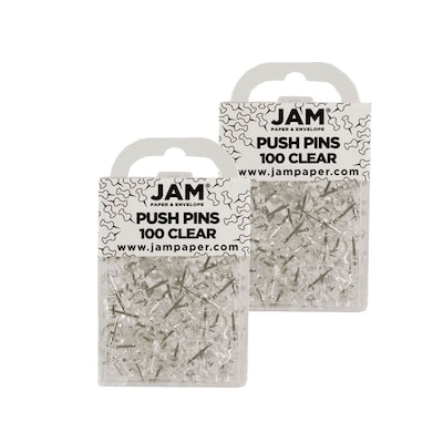 JAM Paper Push Pins, Clear, 2 Packs of 100 (222419050A)