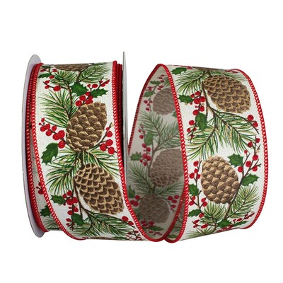 JAM Paper Ribbon, Ivory w/Pinecones (52640348543)