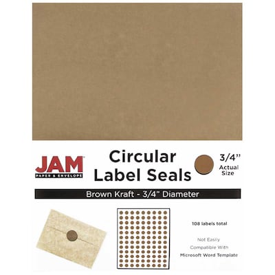 JAM Paper® 3/4" Circled brown kraft label works with microsoft word templates and allow addressing envelopes or your personal belongings in a stylish way.