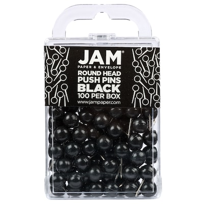 JAM PAPER Round Head Push Pins, Black, 100/Pack (346RTBL)
