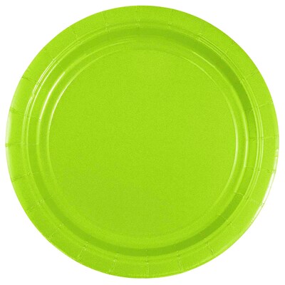 Choose JAM Paper® Small Round Paper Party Plates for your next gathering. These Lime Green paper plates are the perfect addition to any picnic, summer BBQ, birthday party, fundraising event or mid-day office snack as their bright exterior adds a pop of color and matches with any theme you have going on! From appetizers and snacks to desserts, these sturdy plates made from durable cardstock keep food off the ground while cutting clean up time in half. Simply use, toss and get back to your party or snack without washing! Available in an assortment of colors and sizes, color coordinating for your next event is a simple click away. This pack contains 50 small lime green recyclable paper plates and measure 7" diameter.