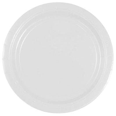 Put down the sponge and pick up JAM Paper® Small Round Paper Party Plates! These White paper plates are a party host's, parent's and anyone busy's favorite accessory when it comes to eating and cleaning afterwards. Cutting clean up time virtually in half, you'll have more time to spend with loved ones or simply relax after a long day. Food stays on top and never on the bottom (the ground, your shirt, pants— you get it) as each plate is made from sturdy, durable cardstock. Say goodbye to leaks, tears and spills at birthday parties, graduation parties and picnics! Available in an assortment of colors and sizes, color coordinating for your next event is a simple click away. This pack contains 50 small white recyclable paper plates and measure 7" diameter.