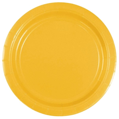 Bring the party anywhere with JAM Paper® Small Round Paper Party Plates! Whether you're hosting a celebration or are on your way to a party, these yellow appetizer sized plates are a great way to serve food and cut clean up time in half! Worry no more about food leaking and spilling or plates tearing as our plates are made from high quality durable cardstock. Food of all temperatures and weights don't stand a chance of tearing through these sturdy plates! Available in an assortment of colors and sizes, color coordinating for your next event is a simple click away. This pack contains 50 small yellow recyclable paper plates and measure 7" diameter.