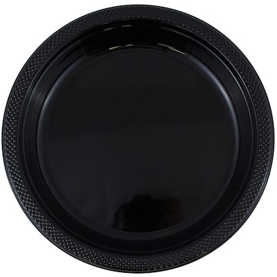 Medium Round Plastic Plates (Black) by JAM Paper - Durable plastic plates for parties