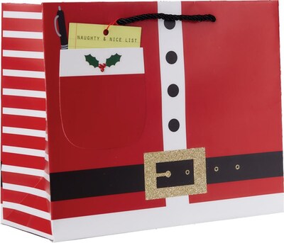JAM PAPER Large Design Bags measure 12.5" x 5" x 10". These bags feature a "Santa's List" design and are sold in a pack of 120. Perfect size for any larger sized gifts this year! Use these large bags for all your gifting needs.