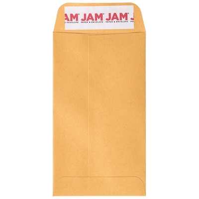 JAM Paper #6 Kraft Coin Envelope, 3 3/8" x 6", Brown Kraft, 1000/Carton (01623992B)