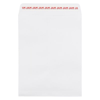 Keeping your mail safe and stylish is simple with JAM Paper Peel & Seal Envelopes. Use these white envelopes to send a variety of mail while saving time, as they feature a peel and seal closure that allows you to quickly get to the post office and have your mail on the way to recipients. Simply pull off the strip and pat down to secure invitations, announcements, greetings, important documents, files, presentations, contracts, and more! Appropriate for both home and office use. This pack includes 100 white envelopes made from 28 lb. paper measuring 8 3/4" x 11 3/4". Each envelope has an open end opening, wallet flap, self adhesive strip closure, and smooth finish. Size: 8.75in x 11.75in | Color: White | Quantity: 100/pack