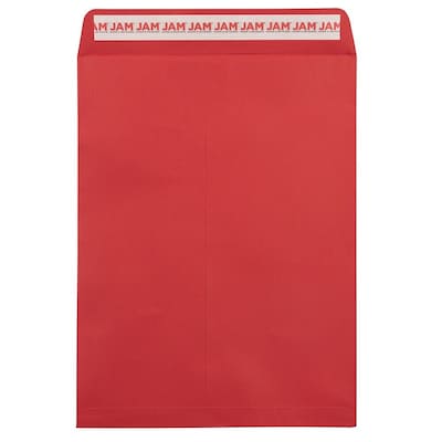 Are you looking for the right envelopes in which to send documents, flyers, files, packets, or booklets from your office or home? You cannot go wrong with JAM Paper Red 9 x 12 Open End Envelopes. These envelopes are made out of smooth, 28lb paper and measure 9 x 12 inches, a size that makes them ideal for sending standard sized sheets of paper. This pack contains an even total of 100 envelopes! Each one features a basic and versatile red color and closes with a straight flap and a secure peel and seal closure. These reliable envelopes are optimal for mailing business documents, formal letters, applications, manuscripts, and much more! Size: 9in x 12in | Color: Red | Quantity: 100