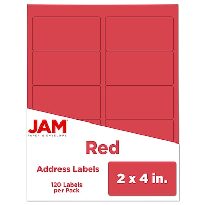 JAM Paper Shipping Labels, 2" x 4", Red, 10 Labels/Sheet, 12 Sheets/Pack (4514940)