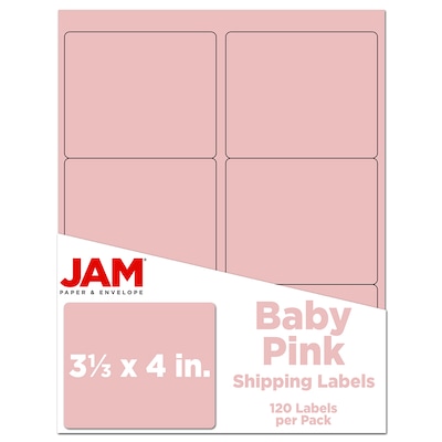 JAM Paper Shipping Labels, 3 1/3" x 4", Baby Pink, 6 Labels/Sheet, 20 Sheets/Pack, 120 Labels/Box (4052899)