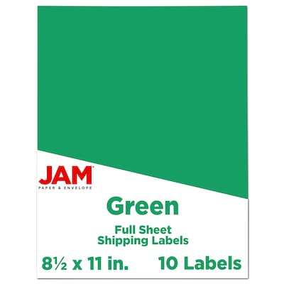 JAM Paper Shipping Labels, 8 1/2" x 11", Green, 1 Label/Sheet, 10 Sheets/Pack (337628607)