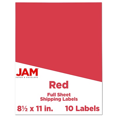 JAM Paper Shipping Labels, 8 1/2" x 11", Red, 1 Label/Sheet, 10 Labels/Pack (337628603)