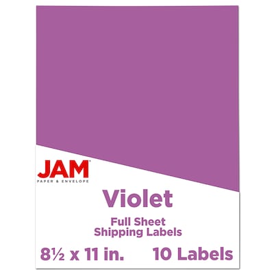 JAM Paper® Shipping Labels, 8 1/2" x 11", Violet Purple, 1 Label/Sheet, 10 Sheets/Pack (337628762)