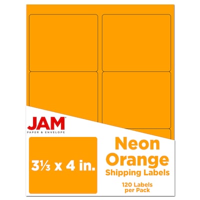 Jam® 3 1/3" x 4" Shipping Labels in neon orange color makes invitations a sparkle and is perfect for inducing your mail more noticeable, sold as 120 labels with 6 per page.