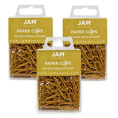 JAM Paper Small Paper Clips, Gold, 3 Packs of 100 (21832058B)