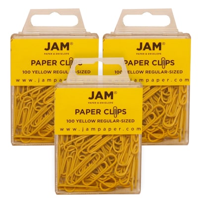 JAM Paper Small Paper Clips, Yellow, 3 Packs of 100 (2183756B)