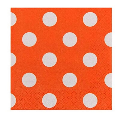 Details Size: 5 x 5 inches Color: Orange w/ Polka DotsQuantity: 16 Napkins