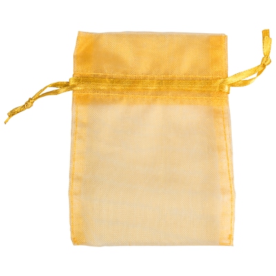 If you're looking for a way to bag up that gift in a classy way, look no further than JAM Paper Small Sheer Organza Gift Bags. Perfect for gifts, party favors, classy goodie bags, jewelry, and candy, these sheer bags will show off your good taste and give a sneak peak of the gift inside at the same time! Whether you use them for weddings, bridal showers, your child's birthday party, and more, these bags will always add a special touch to any event. The gold color makes them perfect for fancy occasions, from corporate events to weddings. They measure 4 x 5 1/2 inches and have a drawstring closure, for easy tightening and loosening. They are secure enough to keep contents inside, yet still easy to open! The organza material has a sheer finish and they will suit any occasion or purpose. These bags are sold in packs of 96. Size: 4 x 5 1/2 inches