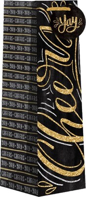 JAM PAPER Bottle Design Bags measure 4 1/2" x 14 x 4 1/2". These bags feature a Sparkling Cheers design and are sold in a pack of 120. Perfect size to fit any bottle of wine. Use this wine bottle bags for all your gifting needs.