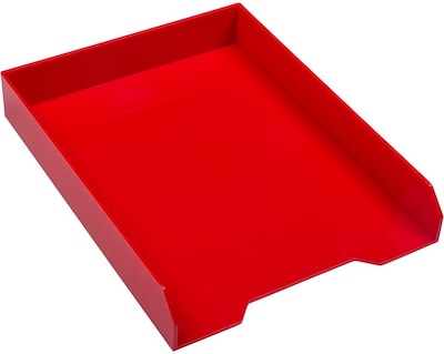"Slot away documents, student reports, invoices, printer paper and so much more inside this accommodating JAM Paper® Red Stackable Paper Tray! It serves to spruce up your workspace with its vibrant crimson hue and ample 9 3/4"" x 12 1/2"" x 1 7/8"" size. Place it on your desk as a neat organization tool; your countertop at home to store mail and catalogs; or your bookshelf to hold magazine issues you want to save/collect. This tray is composed of high quality plastic that's smooth and durable. It features a lacquer-like finish for a standout look. Plus, it can be paired with another tray or two, which you can stack for increased efficiency! This tray is sold individually. Size: 9.75in x 12.5in x 1.875in| Color: Red| Quantity: Sold Individually"