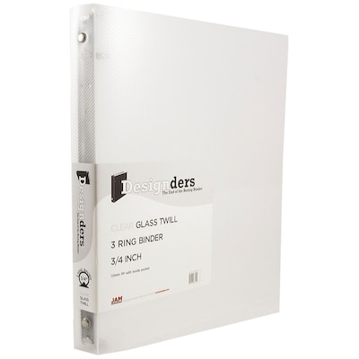 JAM Paper Designders 3/4" 3-Ring Flexible Poly Binders, Clear Glass Twill (7525644)