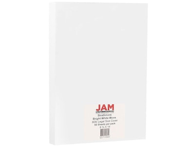 JAM Paper Strathmore 80 lb. Cardstock Paper, 8.5" x 14", Bright White Wove, 50 Sheets/Pack (17428894)