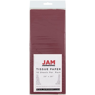JAM Paper® Burgundy Tissue Paper is guaranteed to turn heads. With its distinct and unique color, friends and family will be dazzled by this simple yet beautiful accent. Great for decorating, wrapping, and more, our 20" x 26" tissue paper does a fantastic job at adding the perfect touch of color to any project or gift. This set of tissue paper comes with 10 sheets per pack, is made from 10 lb. paper, has a smooth finish, and comes in 23 different, eye-popping colors to match any mood and occasion!