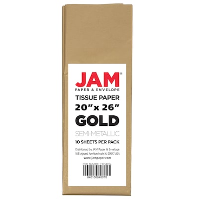 JAM PAPER Tissue Paper, Gold Semi-Metallic, 10 Sheets/Pack
