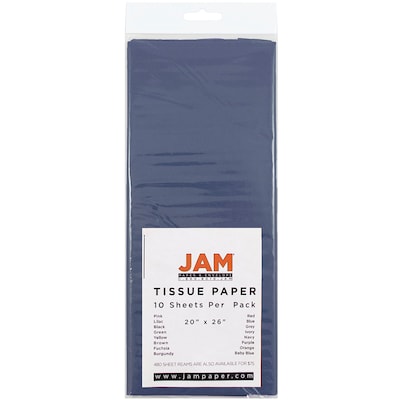 Excited to give your son or husband a gift but can't seem to find the right tissue paper to match? We've all been there. Let JAM Paper® Navy Blue Tissue Paper help by adding a strong, unique shade of Navy Blue that you can never seem to find anywhere else. Our 20" x 26" tissue paper is not only great for gifts, but decorating and crafting too. This set of tissue paper comes with 10 sheets per pack, is made from 10 lb. paper, has a smooth finish, and comes in 23 different, eye-popping colors to match any mood and occasion!
