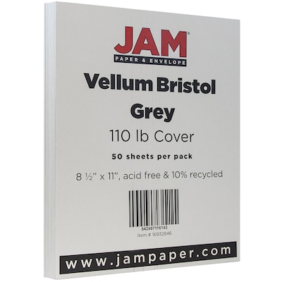 JAM Paper® Vellum Bristol 110lb Index Colored Cardstock, 8.5 x 11 Coverstock, Grey, 50 Sheets/Pack (16932846)