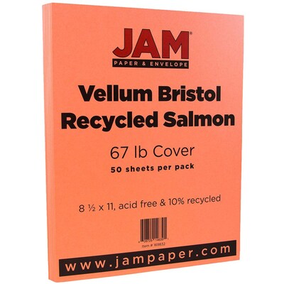 JAM Paper Vellum Bristol 67 lb. Cardstock Paper, 8.5" x 11", Salmon Pink, 50 Sheets/Pack (169832)