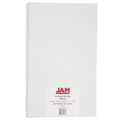 JAM Paper Vellum Bristol 67 lb. Cardstock Paper, 8.5" x 14", White Vellum Bristol, 50 Sheets/Pack (16928437)