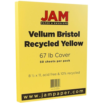 JAM Paper® Yellow vellum Bristol cardstock cover measuring 8 1/2" x 11" has a paper weight of 67 lbs. and is sold as 50 per pack.