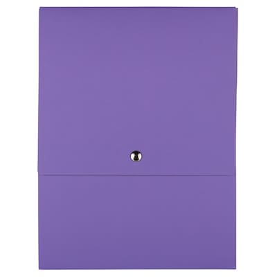 JAM Paper® Vertical Snap Closure Portfolio offers the best protection for important documents. This Purple Kraft portfolio measures 12 1/8" x 9" x 1/2", is made of 100% recycled Kraft materials and features a simple yet secure snap closure to lock in documents. Use to go from meeting to meeting, organize your workspace, or prepare for your next project! This spacious, sturdy portfolio stores essays, presentations, business correspondence, forms, promotional/marketing materials, mail, photos, artwork and much more. Whether you're a student, teacher, or businessman or woman, our modern portfolio is guaranteed to keep all individuals organized and stylish! This portfolio is sold individually. Size: 12.125in x 9in x .5in | Color: Purple Kraft | Quantity: 1 (Sold Individually)