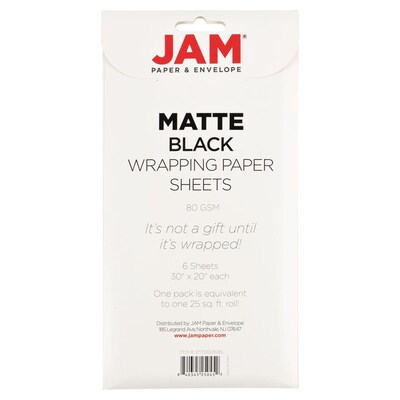 JAM Paper Wrapping Paper Sheets, 25' x 20", Black, 6/Pack(2770135262BL)