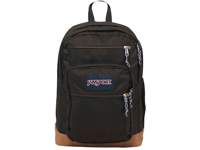 Bring assignments, books, and other items on the go with this black backpack. Featuring an internal sleeve, this backpack provides enough space for a 15-inch laptop, while the side water bottle pocket helps keep you hydrated as you go from class to class. The fully padded back panel and ergonomic S-curve shoulder straps offer enhanced comfort, making it easy to walk long distances while carrying a heavy load. Made with premium materials, this backpack has increased durability, so it's a great option for long-term use. This JanSport Cool Student backpack has two main compartments as well as a pleated front pocket, providing plenty of room for various items.