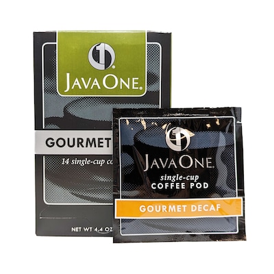 JavaOne Gourmet Decaf Coffee Soft Pods, Light Roast, 84/Carton (JTC30216CT)