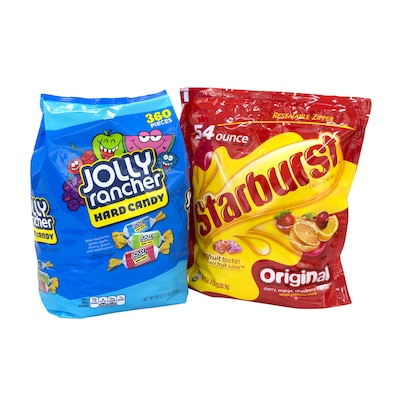 - A 2-Pack bundle of Starburst Fruit Chews Variety and Jolly Rancher Hard Candy Assortment