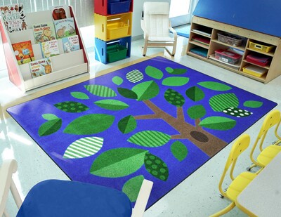 Encourage children to spend time relaxing and learning on this inviting carpet. Coordinates with Shady Grove Sitting Squares. Inspired by the great outdoors, this rug will warm your heart and your home. Nature's beauty can now be a part of your everyday life. Our Shady Grove Rug brings a sense of tranquility and freshness to your surroundings, making it perfect for creating a peaceful retreat or a vibrant play area. Bring the enchantment of a shady grove into your classroom, playhouse, or home with our Shady Grove Area Rug - where every step is a stroll through the forest, and every moment is a breath of fresh air.