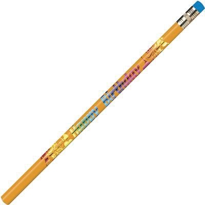 J.R. Moon Products "Happy Birthday" pencil with 2 HB solid lead core is ideal for kids to write, draw or sketch. Kids will love the cool designs. Pencil is made of wood and metal ferrule for durability and features high quality, smooth eraser. Each pack contains 144 Pencils.