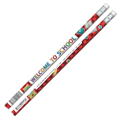 J.R. Moon Products "Welcome to School!" pencil with 2 HB solid lead core is ideal for kids to write, draw or sketch. Kids will love the cool designs. Pencil is made of wood and metal ferrule for durability and features high quality, smooth eraser. Each pack contains 144 Pencils.