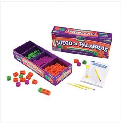 Learning Resources "Juego de Palabras" Spanish reading rods game help players to build as many words as they can in just 2 min. Game consists of 126 color-coded rods, score pad, pencils and 2 mins timer.
