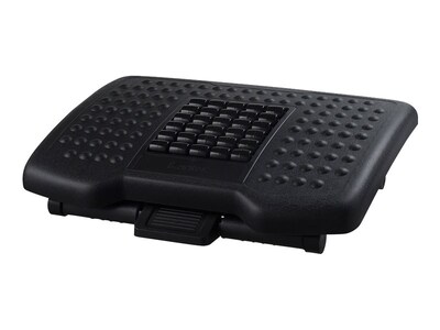 Prop your feet on this ergonomically adjustable footrest to maintain a comfortable working position. Platform rollers and bumps designed to promote circulation massage your feet throughout the day. Three height levels ranging from 4 to 6.5 inches let you align this Kantek premium height-adjustable footrest for optimal comfort, and you can make quiet hands-free changes to its tilt using just your feet.
