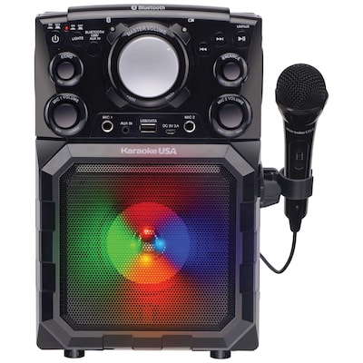 Enjoy playing your MP3 files on a USB flash drive or streaming songs on your smart device while listening to audio on a powerful speaker with the Karaoke USA Portable MP3 Karaoke Player with Bluetooth, PA, and Built-In Battery. Take this player with you wherever you go and get up to 2 hours of playtime on the built-in rechargeable battery. This player comes with a microphone, but will accommodate another microphone for singing duets. Add a little pizazz to the party with the LED lights. It can also be used as a PA System.