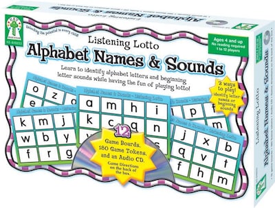 Match letter names to letters or match words with beginning letter sounds to letters. Key Education "Alphabet Names, Sounds" Board game features 12 game cards of 5.5" x 8.5" with 8 photos per card. Game includes 120 tokens, an audio CD and is ideal for age group of 4 and above.