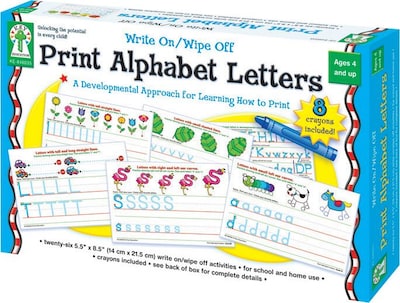 Key Education Print alphabet letters manipulative is a fun, developmental resource that can be erased/used over and over again. Manipulative includes 26 write-on/wipe-off activities and 8 multicolor crayons.