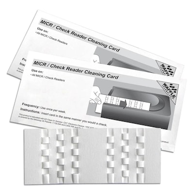 MICR Check Reader Cleaning Card cleans the sensitive magnetic heads, lenses and transport rollers on your check reader to help prevent failures and poor reads