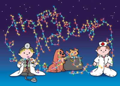Kids Dressed Up Like Doctors with Lights Holiday Greeting Cards, With A7 Envelopes, 7" x 5", 25 Cards per Set