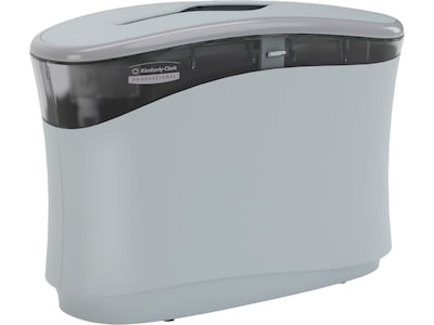 The Kimberly-Clark Professional countertop folded paper towel dispenser offers your restroom guests an upgraded hand-drying experience. Visitors take a hand towel without taking a step, so you can say goodbye to water splashes and sprays on floors and countertops, and hello to a solution that elevates the cleanliness and image of your facility. This sleek, soft gray countertop towel dispenser operates without batteries and has a 15% higher capacity than competing systems, for fewer refills. The dispenser is compatible with select Kleenex and Scott folded paper towels, and when installed properly and used with the recommended product, it meets ADA standards for accessible design. If you're ready to improve cleanliness and revitalize the look of your restrooms, trust the Kimberly-Clark Professional countertop towel system.