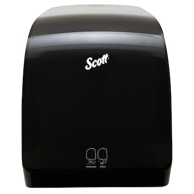 - 1 Dispenser/Case; Scott® Pro™ Automatic Hard Roll Towel Dispenser; Black; for Blue Core Scott® Pro™ Roll Towels; 12.66" x 16.44" x 9.18"